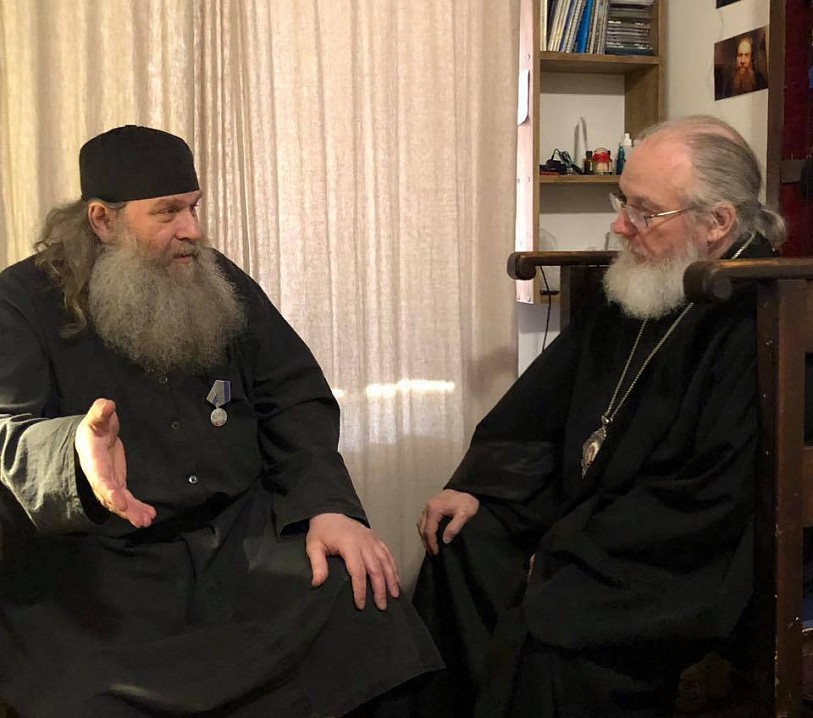 «О своём пути к Богу в терниях афганской войны рассказывал мне сегодня монах Антоний, которого сегодня я пришёл навестить и вручить юбилейную медаль в память 30-летия завершения вывода войск из Афганистана. Помянули всех положивших душу свою вождях и воинах. Монах Антоний (Сергей Мачулин) тогда был командиром части спецназа и участвовал в опасных операциях в тылу врага», – пишет Игумен монастыря епископ Троицкий Панкратий.