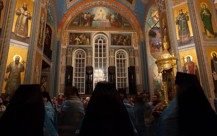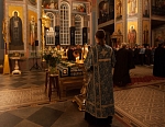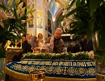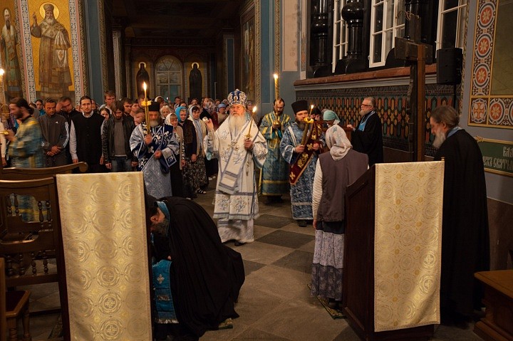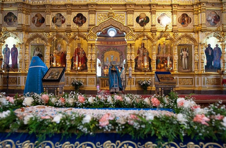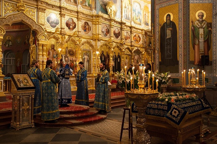 Накануне на Всенощном бдении в Спасо-Преображенском соборе плащаница с изображением Божией Матери была вынесена из алтаря и помещена посредине храма — к ней с молитвой и упованием поспешили паломники и богомольцы. Они смиренно припадали к стопам Заступницы нашей Небесной «странных предстательнице, скорбящих радосте, обидимых покровительнице», Помощницы, Предстательницы, Благой Утешительницы в заботах и делах наших.