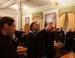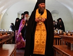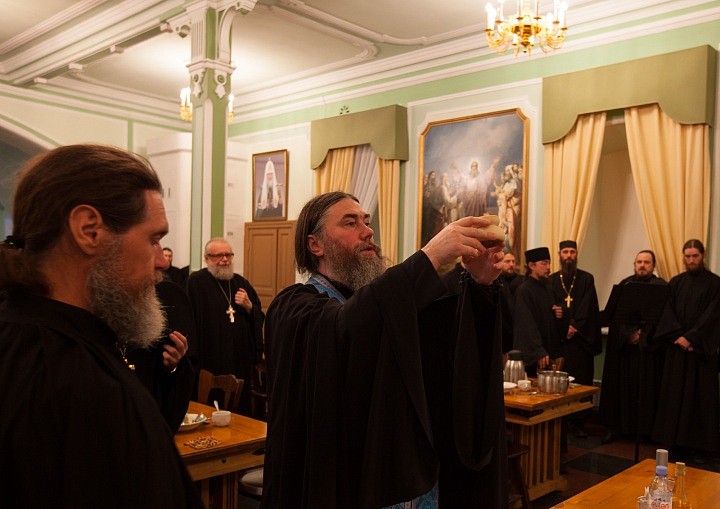 По окончании Литургии было совершено праздничное славление, и насельники Валаамской обители под благозвучный колокольный звон и пение торжественных песнопений перешли в братскую трапезную. Шествие возглавил игумен Валаамского монастыря епископ Троицкий Панкратий. Перед ним несли просфору в честь Пресвятой Богородицы, из которой на Литургии была вынута частица в Ее честь. По окончании трапезы священный хлеб с молитвенным прославлением Святой Троицы и молитвою Пресвятой Богородице просфору возвысили над иконами, раздробили и раздали верующим. Так был совершен чин Панагии.