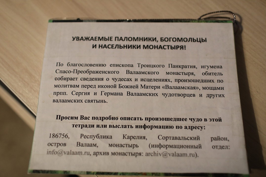 В Валаамском монастыре есть специальные тетради, куда каждый желающий может записать свою историю, свое чудо, как помог ему Господь.