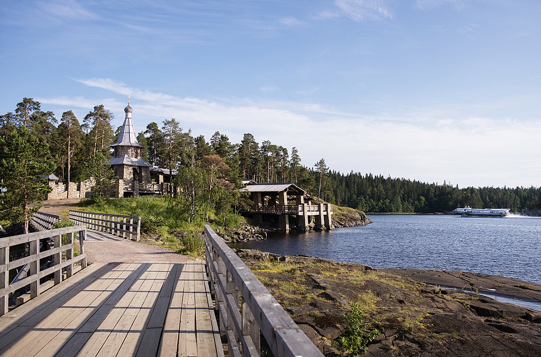 С приплывающих в бухту кораблей открывается вид не только на видимый с Ладоги издалека храм во имя святителя Николая Чудотворца, но и на комплекс часовни с обзорной площадкой, выходящий своим главным фасадом на Монастырскую бухту.