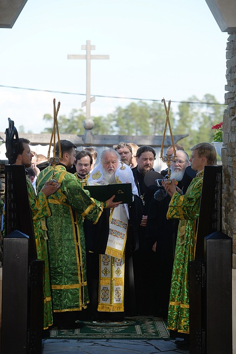 По завершении чина освящения Предстоятель Русской Православной Церкви в кратком слове к участникам богослужения отметил, что очень рад посетить это место, в котором он никогда не бывал прежде.