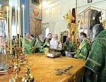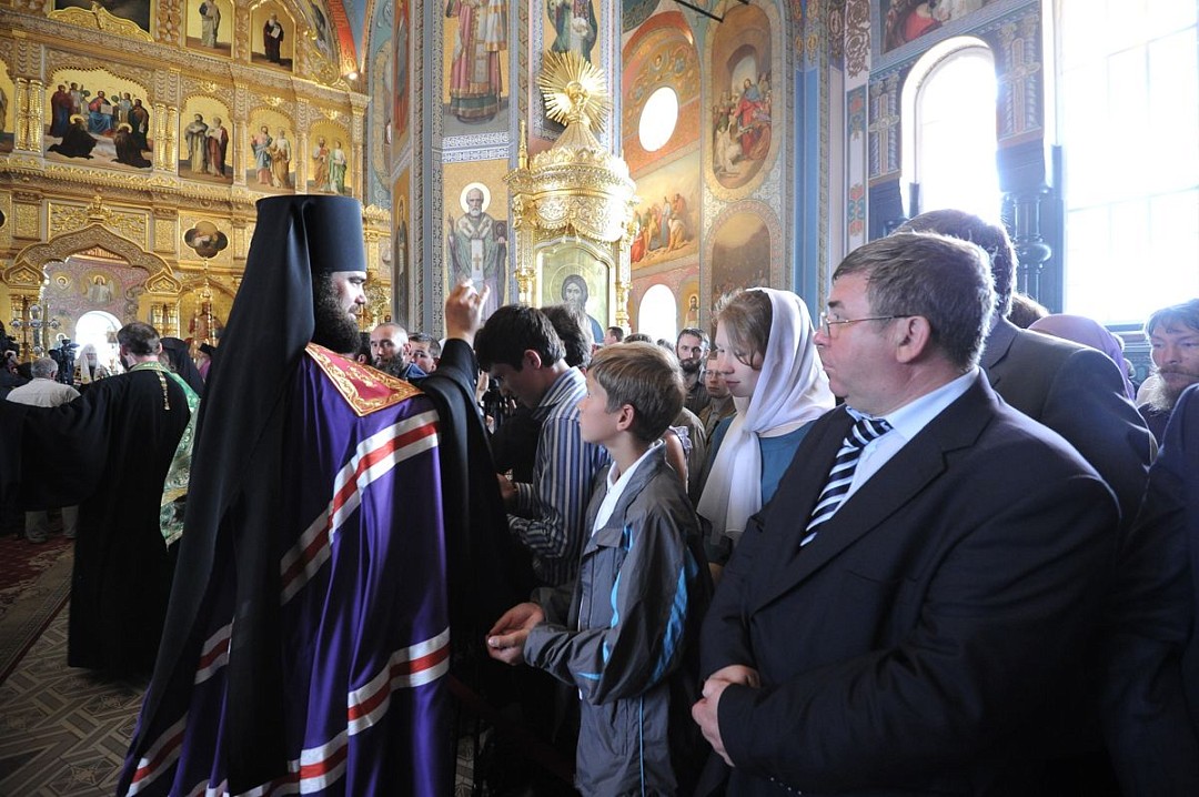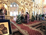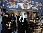 Святейший Владыка вручил епископу Панкратию памятную панагию и передал в дар монастырю список иконы Божией Матери «Вертоград заключенный». Верующим были розданы иконки преподобных Сергия и Германа с Патриаршим благословением.