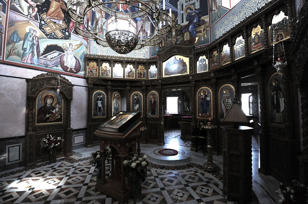 По окончании Литургии Святейший Патриарх Кирилл совершил освящение домового храма святых равноапостольных Кирилла и Мефодия летней гостиницы Валаамского монастыря.