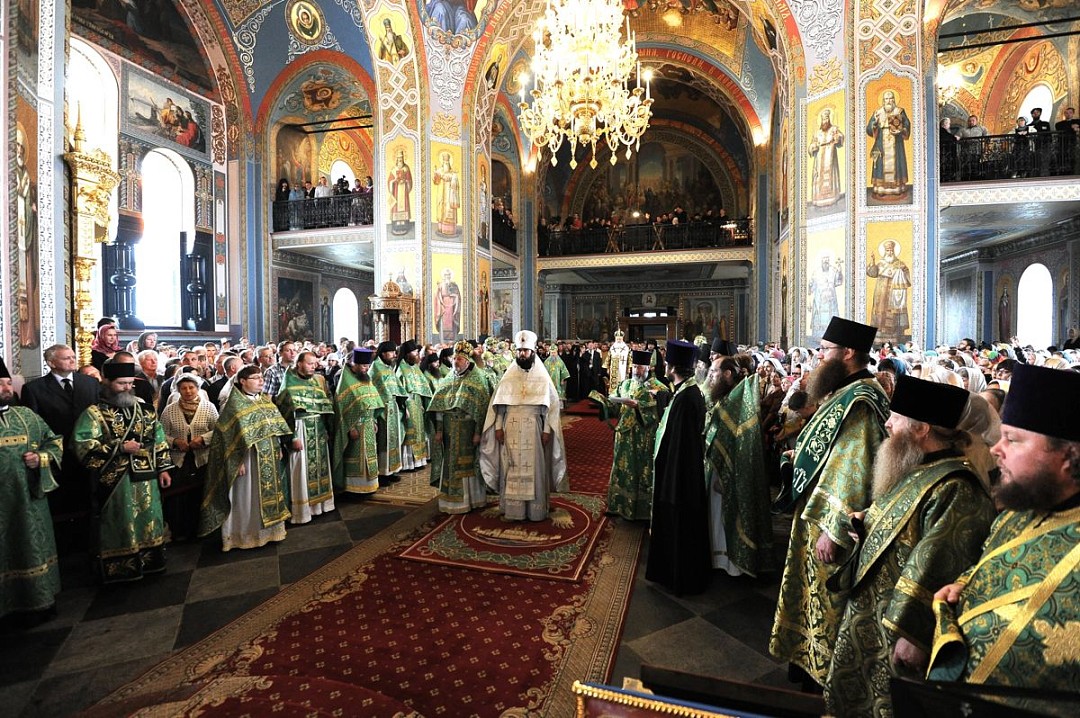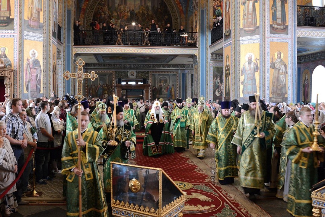 Его Святейшеству сослужили: митрополит Саранский и Мордовский Варсонофий, управляющий делами Московской Патриархии; архиепископ Казанский и Татарстанский Анастасий; архиепископ Петрозаводский и Карельский Мануил; архиепископ Сергиево-Посадский Феогност, наместник Свято-Троицкой Сергиевой лавры; епископ Троицкий Панкратий, наместник Валаамского монастыря; епископ Солнечногорский Сергий, руководитель Административного секретариата Московской Патриархии; архимандрит Исидор (Минаев), начальник Русской духовной миссии в Иерусалиме; протоиерей Михаил Рязанцев, ключарь кафедрального соборного Храма Христа Спасителя г. Москвы; духовенство Татарстанской митрополии и насельники Валаамского монастыря в священном сане.