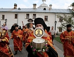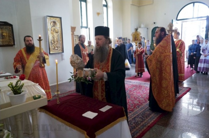 По прибытии иеромонах Гедеон передал Святой ковчег игумену Валаамского монастыря епископу Троицкому Панкратию и шествие братии и прихожан направилось к Спасо-Преображенскому собору, где состоялось праздничное всенощное Бдение с полиелеем, во время которого все приложились к Святому ковчегу.
