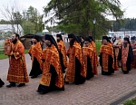 Утром 21 мая состоялась торжественная Божественная литургия в Храме Рождества Христова на Приозерском подворье Валаамского монастыря. Удивительно, но даже в рабочий день в храме было очень много людей - те, кто накануне не успел приложиться к Святому ковчегу с частицей мощей святителя Николая чудотворца, смогли это сделать утром, до прощального отбытия ковчега на остров Валаам