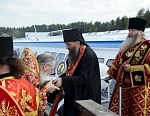 Встречать Святой ковчег вышел буквально весть остров Валаам - вся братия Святой обители во главе с Владыкой Панкратием, местные жители и паломники.