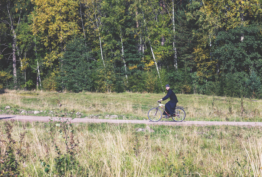 Рядом расположена резиденция Патриарха – двухэтажный дом, окружённый газоном и клумбами. Нас поджидает женщина-дизайнер, которая руководит работами. «Отец Валентин просил без него не начинать», – объясняет кто-то из девушек дизайнеру. «Время же идёт, – слегка нервно говорит дизайнер. – Может быть, не будем его ждать?». Волонтёрки отмалчиваются, потупив глаза. «Ну что там надо сделать, чтобы начать работу? – не унимается дизайнер. – Помолиться? Так помолитесь уже, кто там у вас молитвы знает?». Одна из девушек спокойно отвечает: «Я не готова». Остальные вторят: «И я». Дизайнер меряет шагами дорожку перед сараем с инструментами, она явно нацелена на результат и не очень хочет жить по монастырским правилам. Но настаивать бессмысленно.