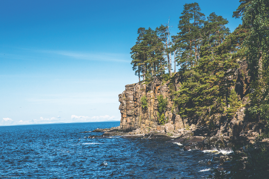 Пока хватает сил и длится световой день, здесь хорошо бродить по лесам и вокруг озёр – на Валааме множество внутренних водоёмов. Прогулки эти никогда не надоедают. Нависающие над обрывами сосны будто бы совершают чудеса эквилибристики. Вересковые и можжевеловые кусты наполняют воздух целительными ароматами. Изрезанные берега так и зовут завернуть за новый поворот, а потом ещё за один. И ног уже нет. А значит – пора купаться, потом ходить босиком по разноцветным мягким мхам и гранитным плитам, которые долго прогреваются весной, но и долго хранят тепло летом. А потом просто лечь где-нибудь на высоком берегу, закрыть глаза и слушать плеск Ладоги, чья волна могла бы конкурировать по благозвучию с морской.