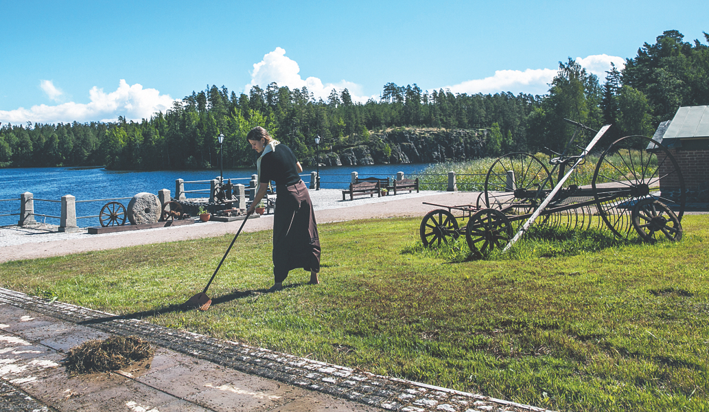 Пёстрая толпа, состоящая преимущественно из женщин в платках и длинных юбках, не обращая внимания на всю эту хипстерскую красоту, бредёт вверх к монастырю. Задираю голову и вижу храм – белый с голубыми куполами. Воздушный, обнесённый внушительными стенами, издалека он похож на сказочный замок. Читаешь адрес – улица Центральная, дом 1 – и сразу становится ясно: вот он, центр здешнего мира. На Валааме всё подчинено монастырскому укладу.