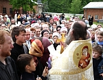 И вот, наконец, поднимаемся по лестнице, ведущей от пристани вверх, к стенам внешнего каре. На вопрос, как вести себя при входе в монастырь, архимандрит Маркелл отвечает: «Не только при входе в монастырь, но и подходя к храму, православные люди троекратно совершают крестное знамение и поясной поклон. Также и перед прикладыванием к иконам, мощам, стоя на молитве, нужно стараться делать поясные или даже земные поклоны. Они к тому же помогают лучше сосредоточиться на молитве».