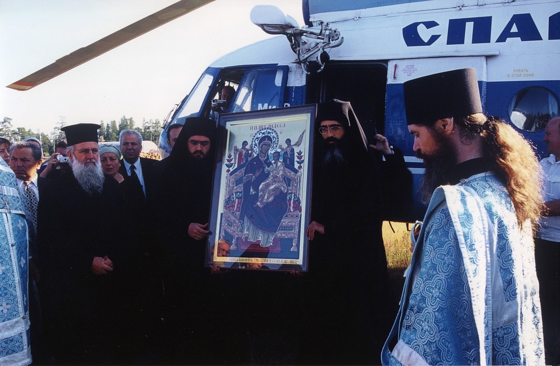 17 июля в Валаамском монастыре состоялось знаменательное событие – встреча игумена афонского монастыря Ватопед архимандрита Ефрема с братией и паломниками. Архимандрит Ефрем привез в дар нашей обители храмовый образ, список с чудотворной иконы "Пантанасса" ("Всецарица"), который был специально написан для монастыря и освящен на Святой Горе Афон.