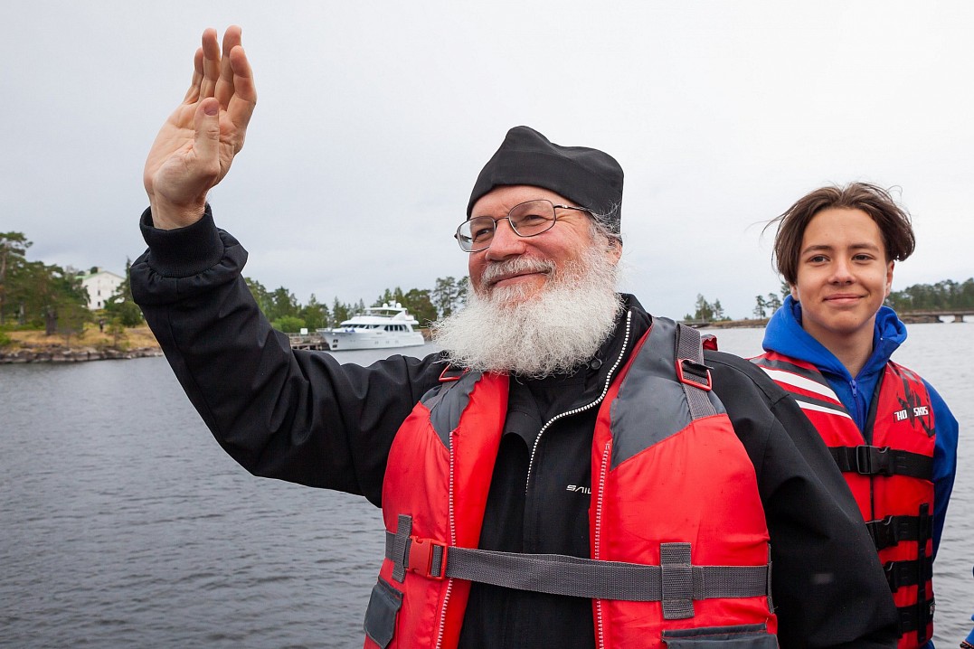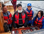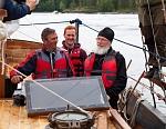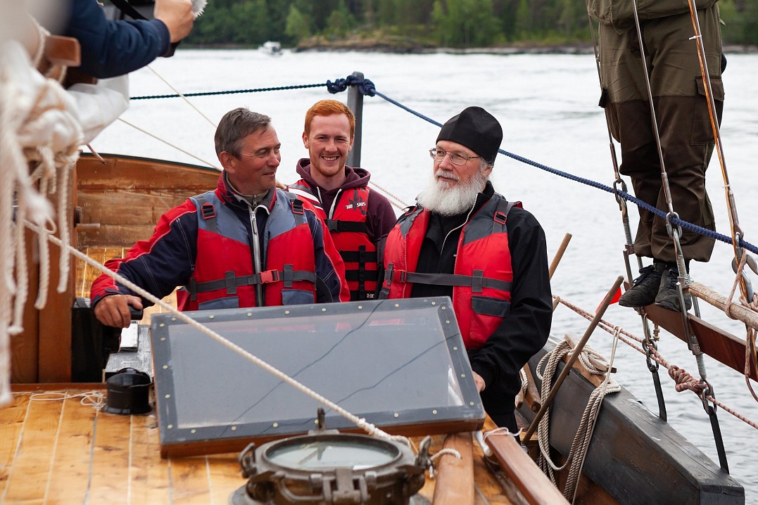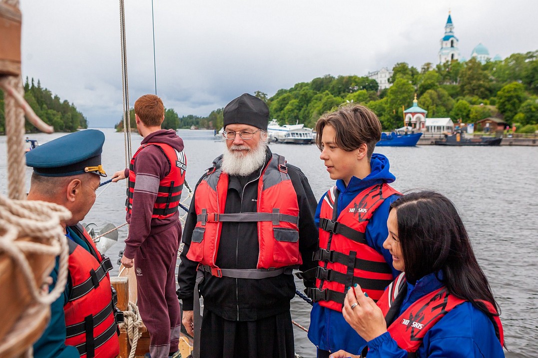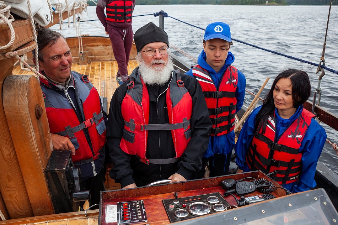 12 июля Владыка Панкратий встретился с ребятами в Монастырской бухте и вышел с ними в Ладогу под парусами. Затем шхуна пришвартовалась к Никольскому скиту, где в храме покровителя моряков святителя Николая Чудотворца была совершена совместная молитва, и Владыка вручил всем памятные грамоты и валаамские сувениры. А 13 июля состоялось дружеское общение с участниками экспедиции в конференц-зале Валаамского монастыря, которое возглавил заместитель губернатора Вологодской области Виктор Владимирович Рябишин.