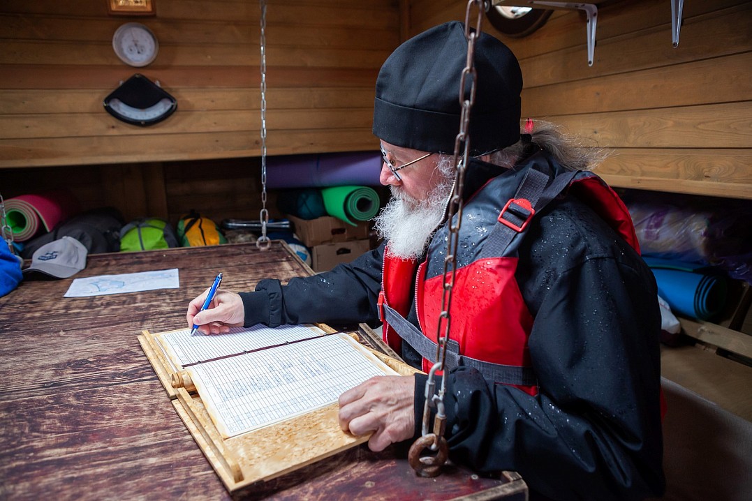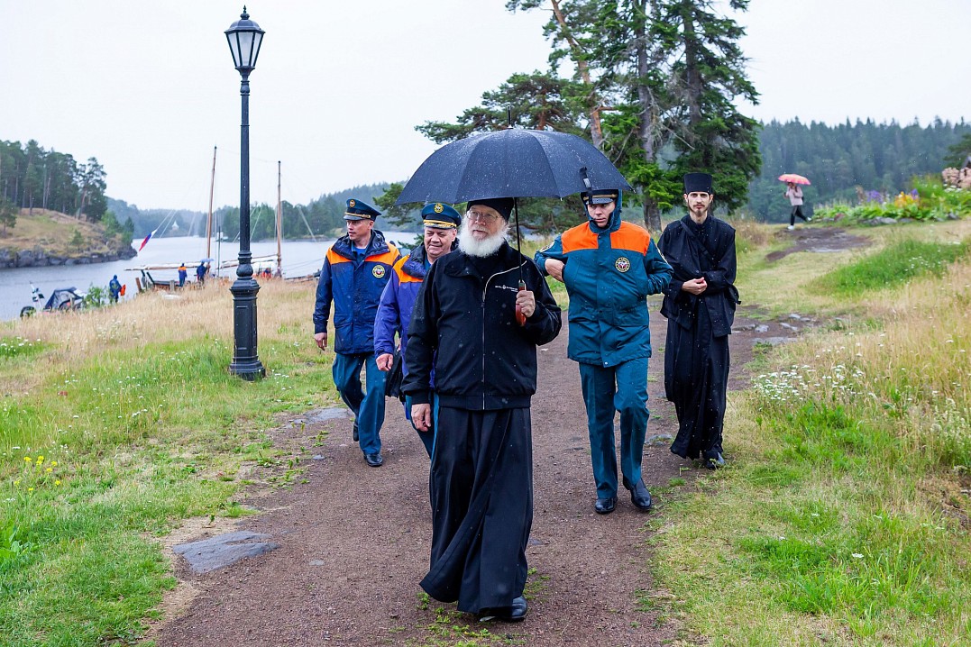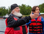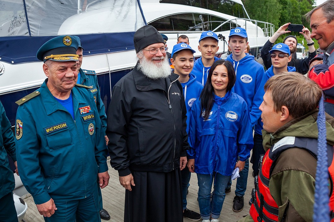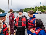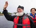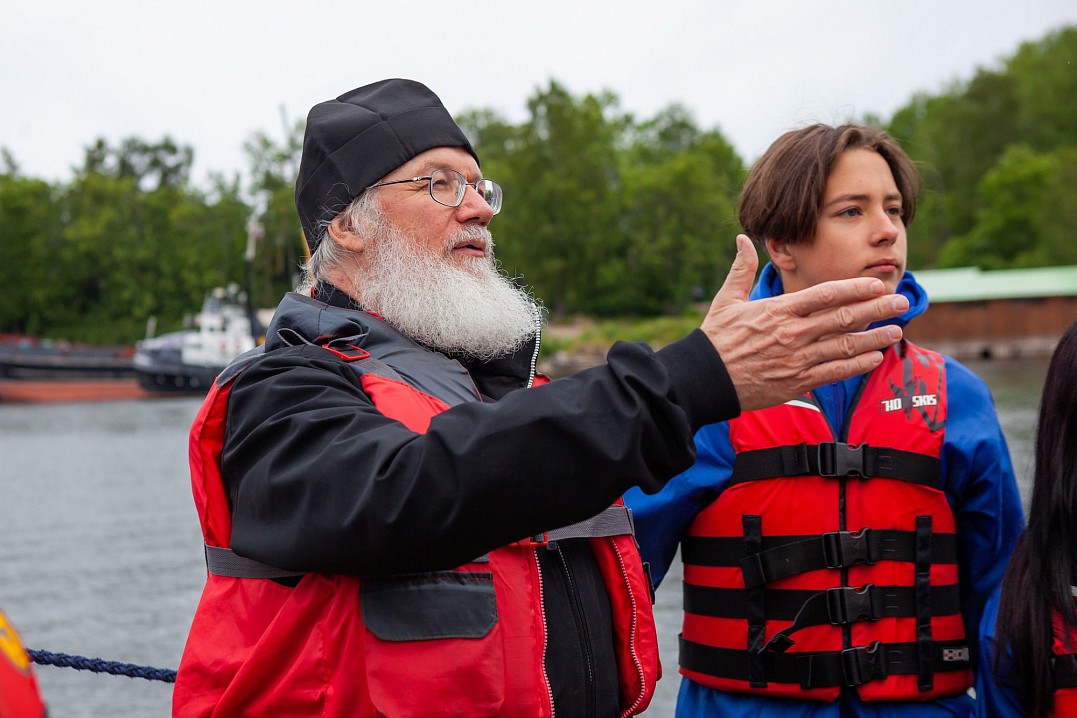 12 июля Владыка Панкратий встретился с ребятами в Монастырской бухте и вышел с ними в Ладогу под парусами. Затем шхуна пришвартовалась к Никольскому скиту, где в храме покровителя моряков святителя Николая Чудотворца была совершена совместная молитва, и Владыка вручил всем памятные грамоты и валаамские сувениры. А 13 июля состоялось дружеское общение с участниками экспедиции в конференц-зале Валаамского монастыря, которое возглавил заместитель губернатора Вологодской области Виктор Владимирович Рябишин.