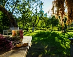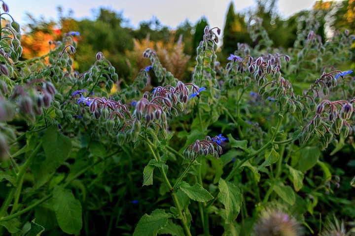 Произрастает в Верхнем саду золотистый зверобой, который используется для изготовления растительных антибиотиков. Тонкий медовый аромат испускает душица — весьма эффективная для лечения заболеваний нервной системы. Рядом притаились нежно-бархатистые листочки мяты — такой полезной при снятии болей и выводе мокроты. А вот и скромная огуречная трава бораго — ее добавляют в салаты, чтобы придать им свежий и пикантный вкус, а также насытить витаминами.