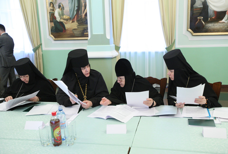 В работе заседания участвовали: архимандрит Тихон (Шевкунов), наместник Сретенского ставропигиального мужского монастыря г. Москвы; архимандрит Алексий (Поликарпов), наместник Свято-Данилова ставропигиального мужского монастыря г. Москвы; архимандрит Порфирий (Шутов), наместник Спасо-Преображенского Соловецкого мужского монастыря; архимандрит Савва (Фатеев), наместник Саввино-Сторожевского монастыря; игумения Сергия (Конкова), настоятельница Свято-Троицкого Дивеевского женского монастыря; игумения Моисея (Бубнова), настоятельница Свято-Вознесенского Иерусалимского женского монастыря на Елеоне; игумения Феофила (Лепешинская), настоятельница Богородице-Рождественского женского монастыря; игумения Серафима (Шевчик), настоятельница Свято-Архангело-Михайловского женского монастыря г. Одессы; иумения София (Силина), настоятельница Воскресенского Новодевичьего женского монастыря г. Санкт-Петербурга; игумен Стефан (Тараканов), заместитель председателя Синодальной комиссии по делам монастырей; протоиерей Павел Великанов, проректор по научной работе Московской духовной академии; В.Р. Легойда, председатель Синодального информационного отдела.