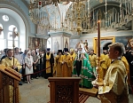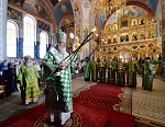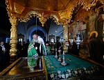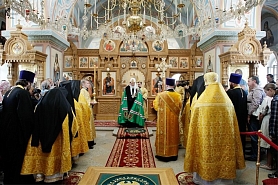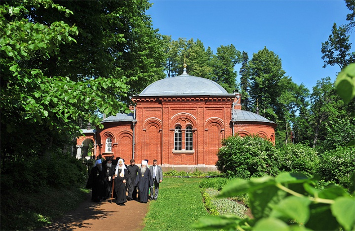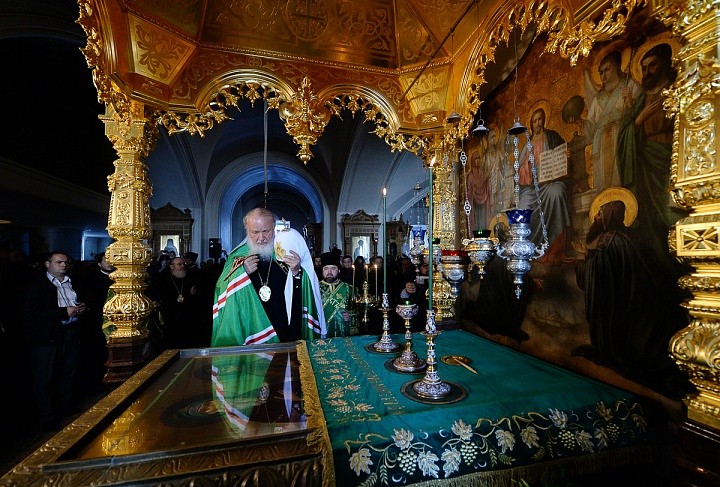 Я в прошлый раз был здесь год назад. За этот год произошли добрые перемены в благоустроении обители; надеюсь, что и в духовном состоянии братии. Я бы хотел, Ваше Преосвященство, владыка игумен, сердечно поблагодарить Вас за руководство этой ставропигиальной обителью и, в том числе, за осуществление воли ее священноигумена Патриарха по дальнейшему устроению и благоукрашению сего святого места, по созиданию духовно сильной, мужественной, мудрой и смиренной монашеской общины. В этот день я хотел бы преподнести Вам в качестве дара сию святую панагию с благодарностью за Ваше служение Господу в этом месте. Храни Вас Господь.