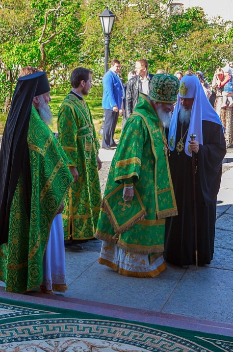 Но перед нами не меньшие опасности — в бурях житейского моря. Это страшные подводные течения и водовороты, которых не видно на глади этого житейского моря, но которые действуют чаще всего под водами, имея силу вовлечь в бездну гибели и человека, и общество, и государство, и весь род человеческий. Мы не должны бояться этих искушений, соблазнов, угроз, потому что ничего нового в мире не происходит. Мы должны бодрствовать, как бодрствовали святые преподобные Сергий и Герман; мы должны нести свое призвание так же дерзновенно и мужественно, как они несли, — не поддаваясь соблазнам, оставаясь верными Господу и через свое смиренное служение Богу и людям вымаливая спасение своей собственной души и спасение рода человеческого. Дай Бог, чтобы именно так, а не иначе осуществлялось монашеское житие на этом благословенном острове.