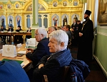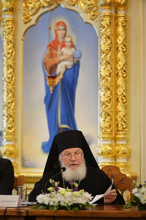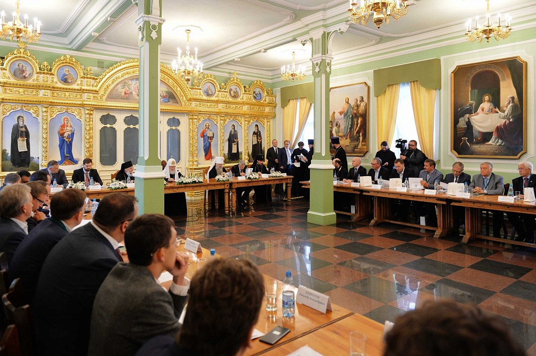 "Ваши Высокопреосвященства и Преосвященства! Владыка наместник, игумен сей святой обители! Дорогие братья и сестры, участники заседания Попечительского совета!