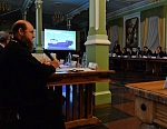 О.М. Бударгин рассказал о деятельности фонда «Свет Валаама», который работает с 2015 года. Докладчик остановился на трех направлениях работы фонда: деятельность Международного Свято-Владимирского Валаамского фестиваля православного пения; создание системы охраны здоровья и современной медицинской помощи на Валааме; разработка программы сохранения природной среды Валаамского архипелага.