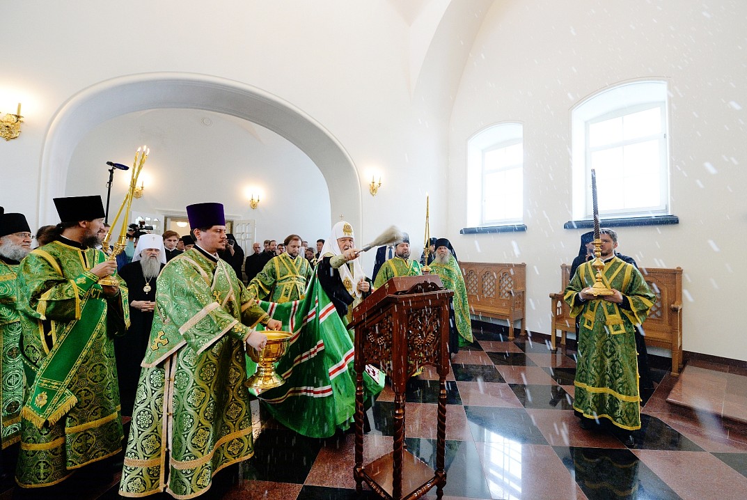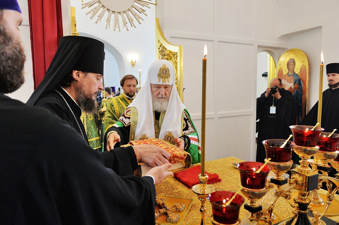 Святейший Патриарх Кирилл освятил надвратный храм святых апостолов Петра и Павла в Валаамском монастыре, 2018