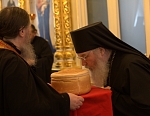 В заключение, дорогие отцы и братья, хочется всем вам пожелать, чтобы пасхальная радость нас не покидала круглый год. Вспомним преподобного старца Серафима Саровского, приветствовавшего каждого приходящего к нему словами: «Радость моя! Христос Воскресе!» И овеществленным выражением этой всеобъемлющей вселенской удивительной радости о Господе Воскресшем как раз является артос. Частичка хлеба, который был принесен нами в дар Богу и который возвращен Господом нам для того, чтобы оберегать, исцелять нас, грешных, величайшей силой Своего Воскресения.