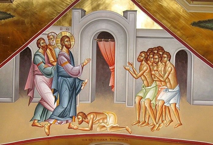 Возвращаясь к теме сегодняшнего Евангелия, мы видим совершившиеся Божье благодеяние к десяти прокаженным. Господь как Личность привлекает к себе этих людей, совершив над ними чудо исцеления от проказы, избавив их от жалкого скитания по пустыне, возвратив им способность к нормальной жизни в обществе. Он дарует этим людям то, что они считают для себя самым важным, первостепенным в этот момент своей жизни. Но порой полученный дар настолько страстно бывает желаем, что в эйфории своего переживания и внутренней удовлетворённости только им помрачает разум и сердце человека и умаляет в нём значимость Личности, от которой он получает этот дар. Из десяти исцелённых, получивших столь великое для себя благодеяние, только один возвратился поблагодарить своего Благодетеля и захотел приблизиться к Нему. Только один из десяти продолжил общение со своим Благодетелем, не остановившись лишь на получении от Него дара. Только у одного из десяти открылось сердце, и возникли глубокие чувства благодарности ко Христу. Остальные девять, послушно исполняя указания Христа показаться священникам, ограничились в общении с Христом лишь собственным разумом и, получив исцеления от Него, полностью удовлетворились этим, отдав снова своё сердце привычным удовольствиям видимой жизни. Несмотря на великое благодеяние для них, сердца их остались закрытым для Христа. Они не искали больше общения и сближения со своим Благодетелем, не видели смысла в дальнейшей связи со Христом. Он остался для них в памяти лишь орудием исцеления их тела, подобно бездушному инструменту, которым что-то починили и который убрали в сторону до следующей поломки. А лучше бы, если бы в жизни вообще не было никаких поломок, потрясений, и инструмент вовсе не понадобился бы, лежал бы себе в углу ненужный и забытый.